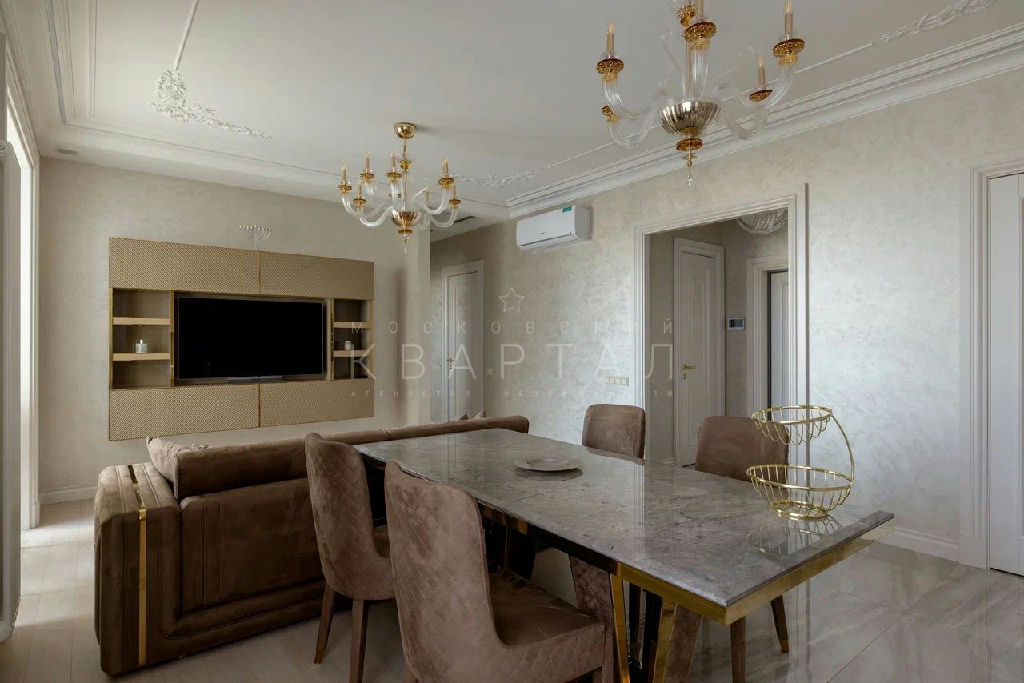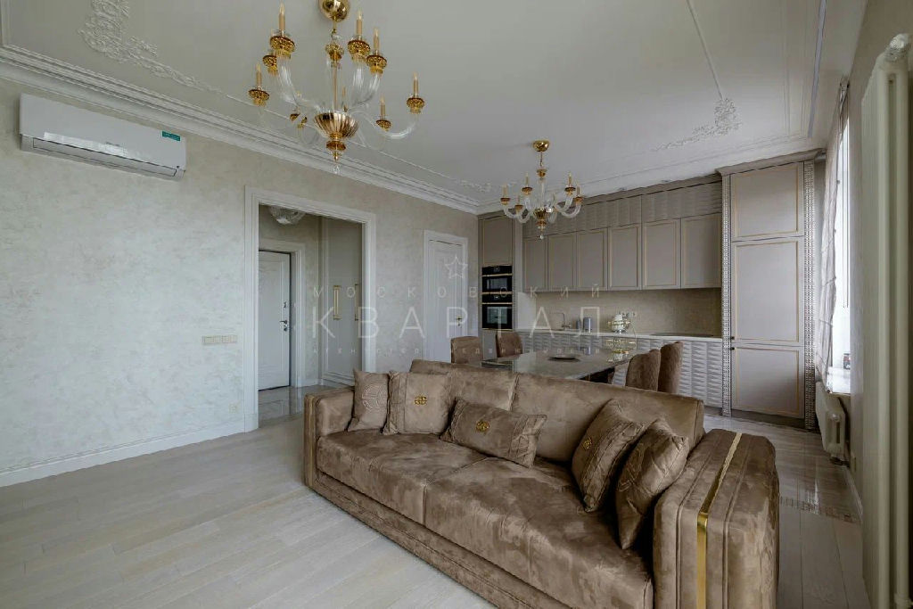 Квартира с новым ремонтом (жили всего месяц) по авторскому проекту с использованием премиальных материалов: натуральный мрамор, паркетная доска. Новая дизайнерская мебель, итальянские люстры - по договоренности могут остаться новому владельцу.